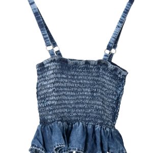 Hermoso Croptop en chambray enresortado para que se ajuste muy bien a tu cuerpo.Cuenta con tensores para mayor comodidad.