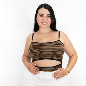 Este crop top se puede usar de diferentes maneras: con escote en la parte de la espalda o adelante. Ideal para combinar con jeans, faldas o shorts, es perfecto para cualquier ocasión, desde un día casual hasta una noche de fiesta. ¡Deja volar tu creatividad!